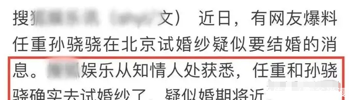 后来孙骁骁被拍到和男演员任重出现在婚纱店,孙骁骁在试婚纱。